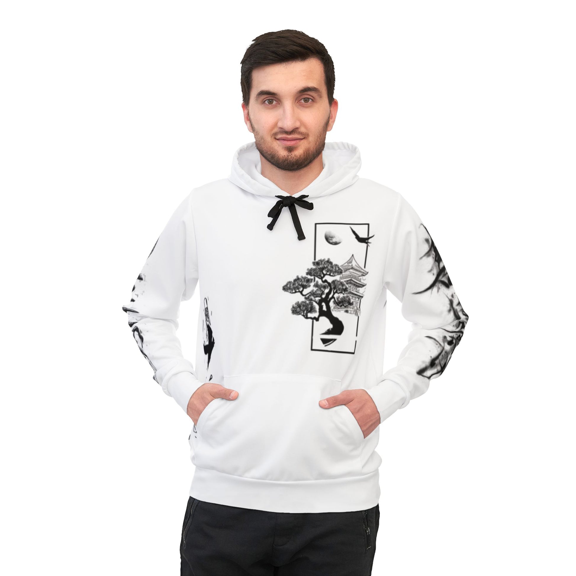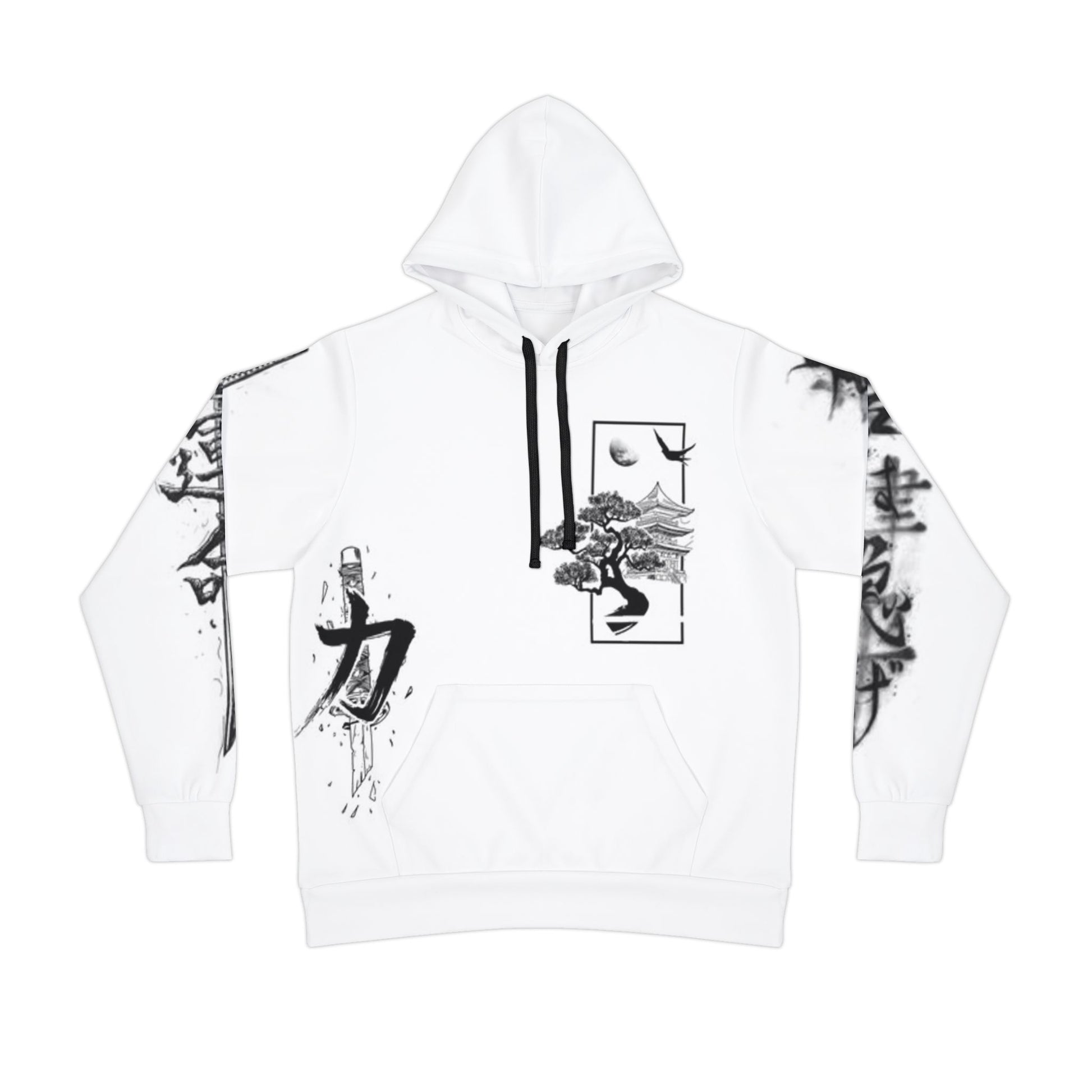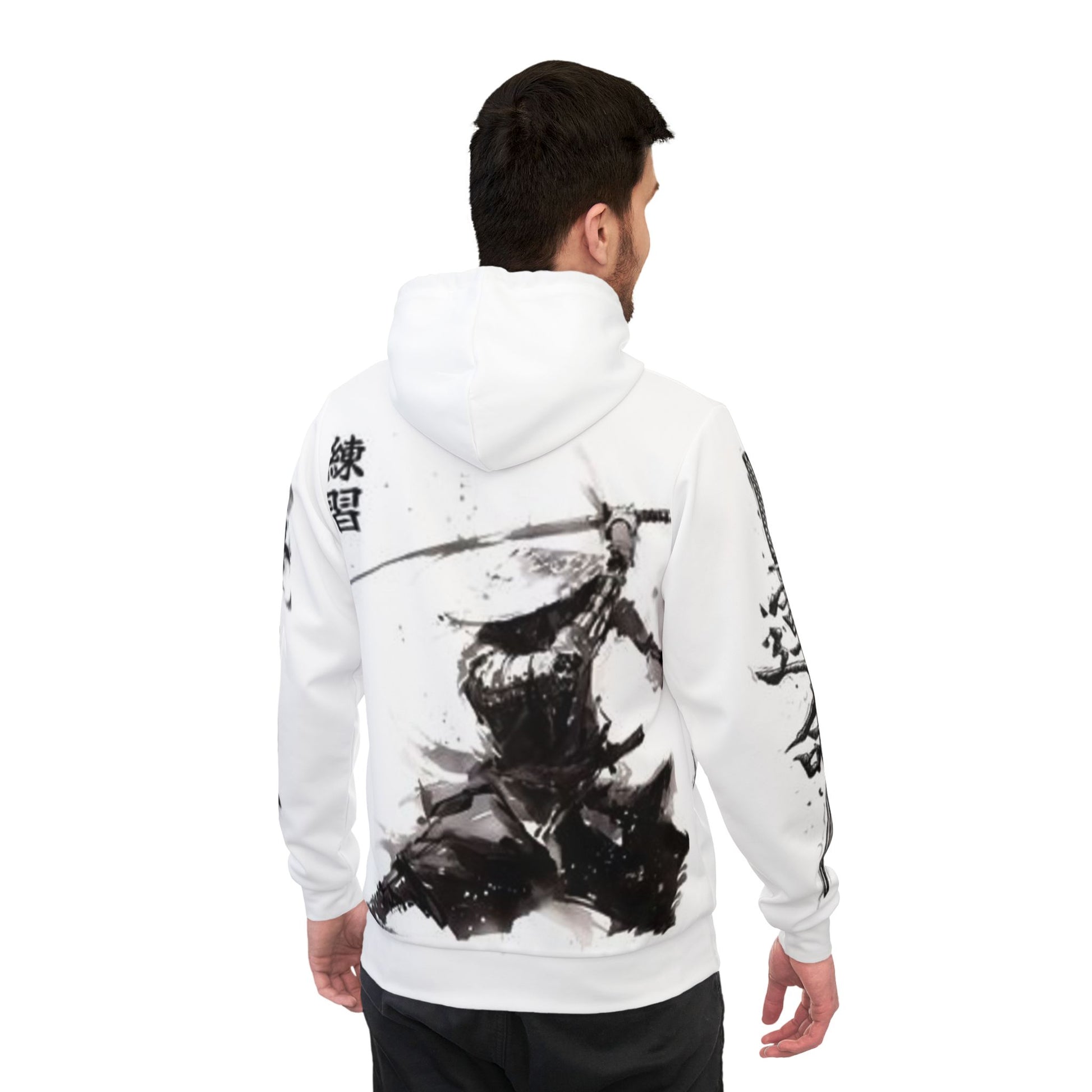 Athletic Hoodie (AOP), Samurai Ink Art Hoodie, Japanese Samurai Hoodie, Black and White Samurai Sweatshirt, Unisex Samurai Streetwear